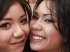 三つ巴 - 二人の女の子が 1 つの脂肪コック、熱い三つ巴チョークします。