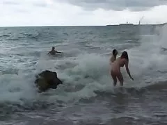 三つ巴 - 二人の女の子が 1 つの脂肪コック、熱い三つ巴チョークします。