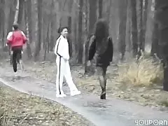 三つ巴 - 二人の女の子が 1 つの脂肪コック、熱い三つ巴チョークします。